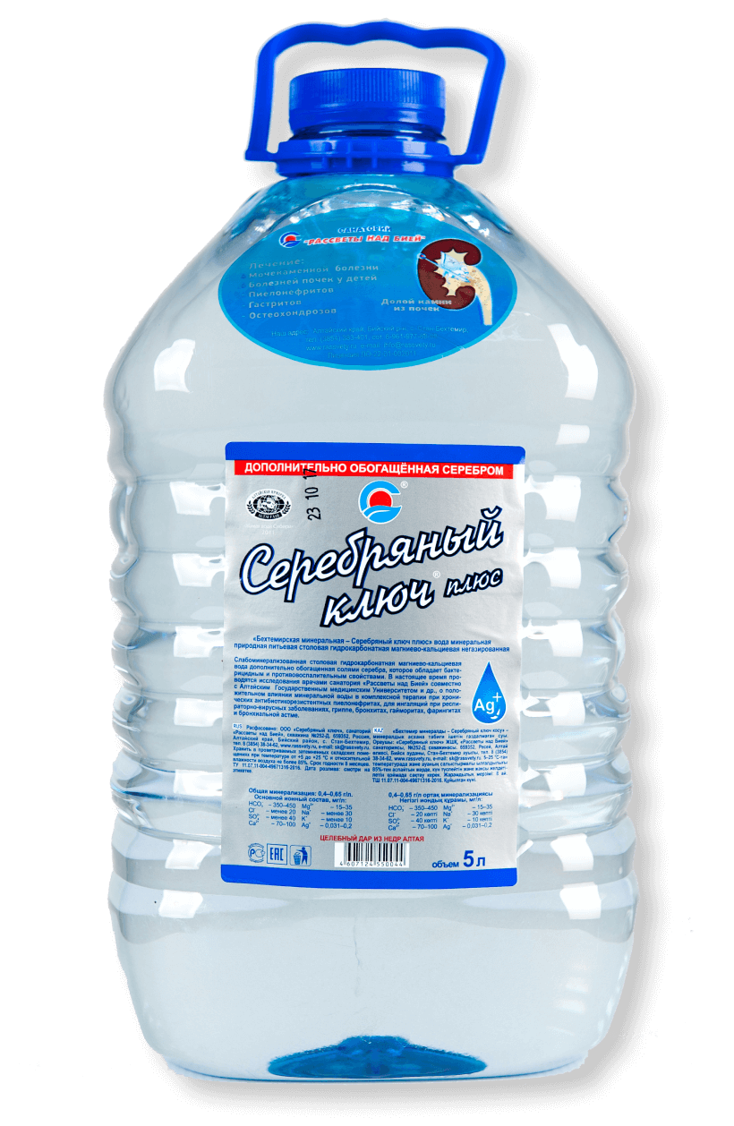 Серебряный ключ, Бехтемирская вода, вода при МКБ, минеральная вода, урология, негазированная минеральная вода, Минеральная вода Серебряный ключ 5 л негазированная, вода питьевая негаз, вода 5 л плюс, Слабоминерализованная гидрокарбонатная магниево-кальциевая вода, лечение ЖКТ, вода, премиум вода, вкусная вода, полезная вода, мочегонная вода, санаторий Рассветы над Бией, санаторий, лечение урологии, камни в почках, камни в желчном, природная минеральная вода, дисметаболическая нефропатия, пиелонефрит, заболевания дыхательных путей, ЖКТ, аллергические состояния, простатит, андроген-дефицитные состояния, ДГПЖ, аднексит, бесплодие, спаек, цистит, хронический пиелонефрит, ХПН в фазе компенсации, послеоперационное восстановление органов мочеполовой системы, вода с серебром, вода на каждый день, купить, заказать, приобрести, плюс